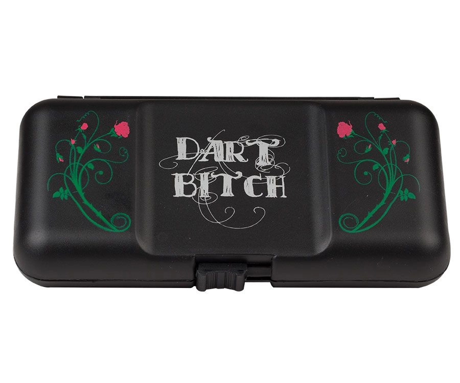 This elegant dart has been made with great care to ensure proper balance while respecting the integrity of the design. Inlcudes matching black case with a red rose and the script “Dart Bitch” on the cover.